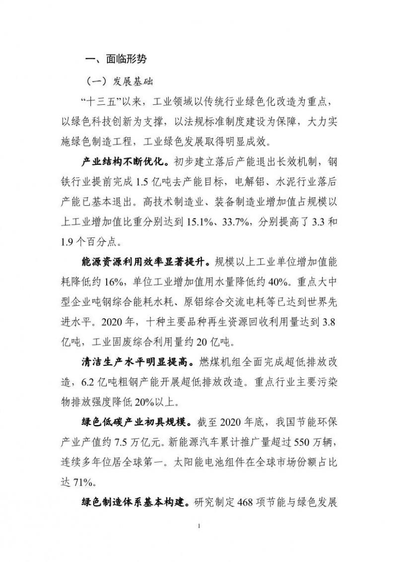 工業(yè)和信息化部關(guān)于印發(fā)《“十四五”工業(yè)綠色發(fā)展規(guī)劃》的通知