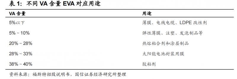 具體來看,EVA是一種應(yīng)用場(chǎng)景很廣的化學(xué)原料,根據(jù)醋酸乙烯脂(VA)含量的不同,EVA所應(yīng)用的場(chǎng)景也顯著差異。