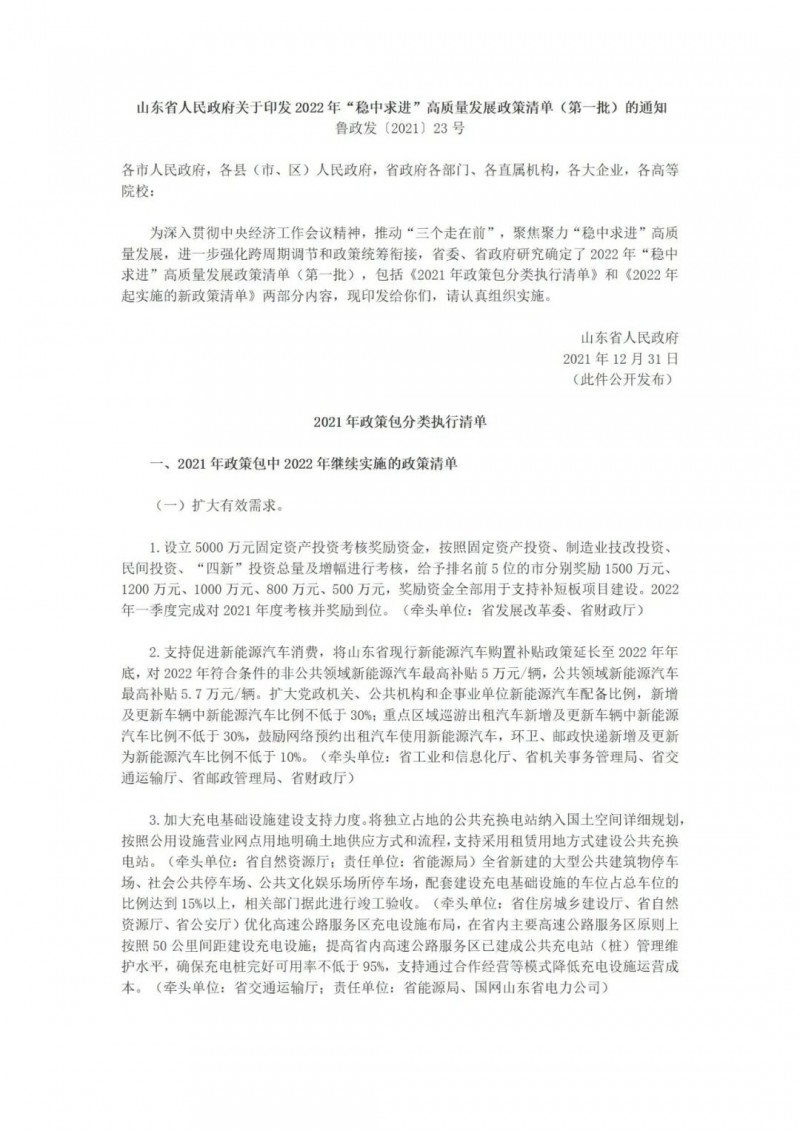 12月31日,山東省人民政府印發(fā)2022年“穩(wěn)中求進”高質(zhì)量發(fā)展政策清單(第一批)的通知,提出了共178項優(yōu)惠政策。