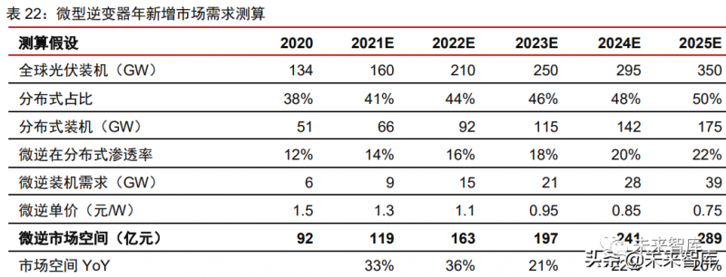 微逆市場有望迎來高增長,未來 5 年市場空間 CAGR 或超 25%,優(yōu)質(zhì)廠商有望持續(xù) 高成長。在全球屋頂分布式光伏市場裝機占比提升,以及安全性要求持續(xù)提升的推動下, 隨著微型逆變器產(chǎn)品性價比持續(xù)優(yōu)化,滲透率有望迎來快速提升??紤]到微逆價格和成本 有望持續(xù)下降,我們預計 2025 年微型逆變器市場空間或達 290 億元,對應 CAGR 超 25%, 具備產(chǎn)品性能和成本優(yōu)勢的國內(nèi)逆變器龍頭企業(yè)具備強勁的市場競爭能力和巨大的全球 替代空間。