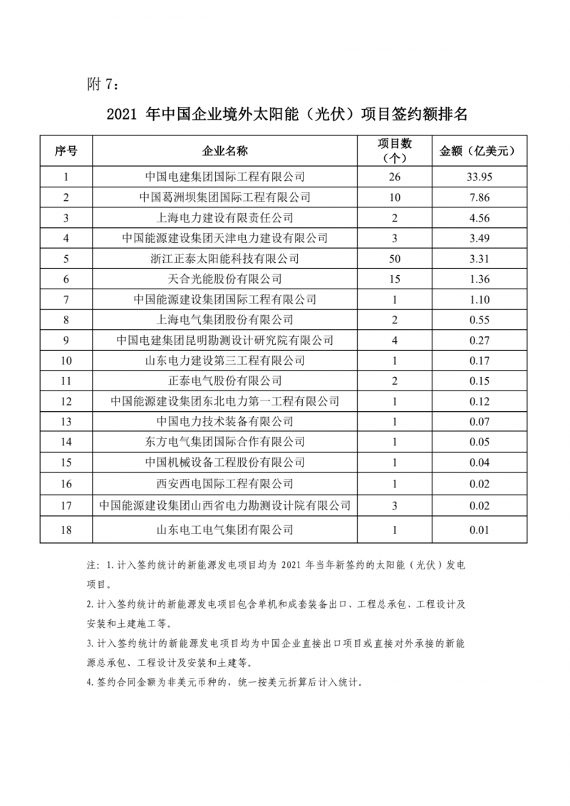 據(jù)了解,計(jì)入簽約統(tǒng)計(jì)的新能源發(fā)電項(xiàng)目包含單機(jī)和成套裝備出口、工程總承包、工程設(shè)計(jì)及安裝和土建施工等;新能源發(fā)電項(xiàng)目均為中國(guó)企業(yè)直接出口項(xiàng)目或直接對(duì)外承接的新能源總承包、工程設(shè)計(jì)及安裝和土建等。