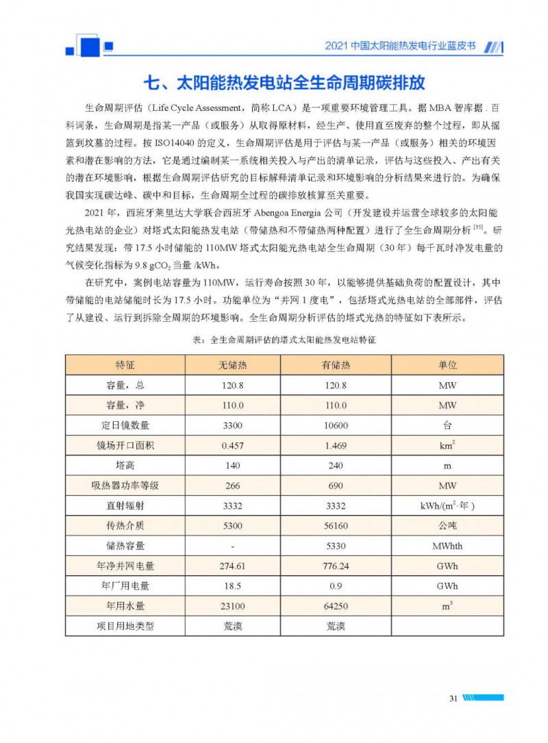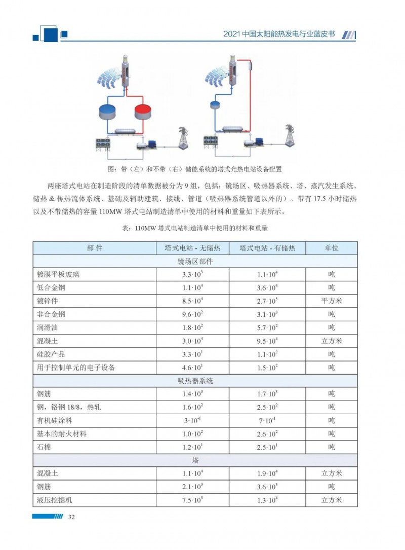 2021中國太陽能熱發(fā)電行業(yè)藍(lán)皮書(以下簡稱“藍(lán)皮書”)共分為9個章節(jié),分別為:太陽能熱發(fā)電的發(fā)展機(jī)遇和定位、太陽能熱發(fā)電市場發(fā)展、我國太陽能熱發(fā)電示范項(xiàng)目運(yùn)行情況、我國太陽能熱發(fā)電產(chǎn)業(yè)鏈情況、我國太陽能熱發(fā)電研發(fā)項(xiàng)目情況、太陽能熱發(fā)電投資成本、太陽能熱發(fā)電站全生命周期碳排放、太陽能熱發(fā)電發(fā)展面臨的挑戰(zhàn)及對策,以及附錄。附錄主要包括:我國2021年發(fā)布的太陽能熱發(fā)電項(xiàng)目政策、美國能源部2021年度支持的太陽能熱發(fā)電項(xiàng)目清單、2021年發(fā)布的太陽能熱發(fā)電相關(guān)國家標(biāo)準(zhǔn)、我國太陽能熱發(fā)電行業(yè)發(fā)展主要?dú)v程、太陽能光熱聯(lián)盟理事成員單位及業(yè)務(wù)范圍名錄。全文4.5萬+字,共55張圖表。