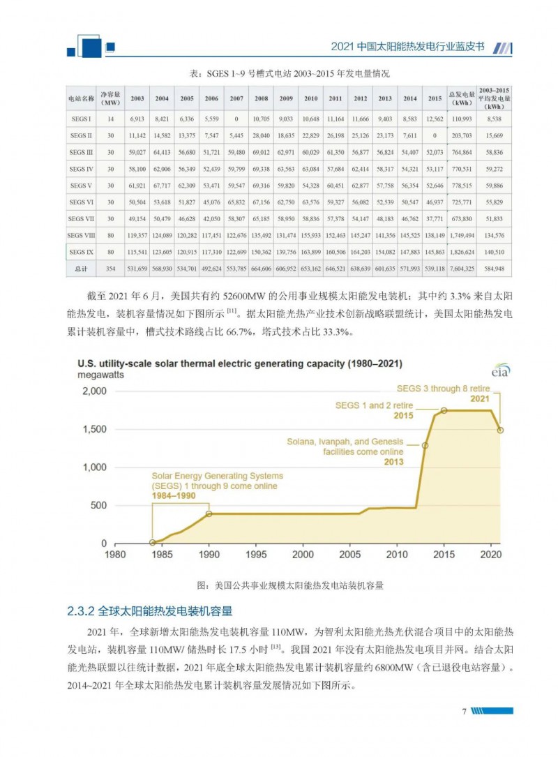 近日,由國家太陽能光熱產(chǎn)業(yè)技術(shù)創(chuàng)新戰(zhàn)略聯(lián)盟、中國可再生能源學(xué)會太陽能熱發(fā)電專業(yè)委員會、中關(guān)村新源太陽能熱利用技術(shù)服務(wù)中心聯(lián)合編制的《2021中國太陽能熱發(fā)電行業(yè)藍(lán)皮書》發(fā)布。