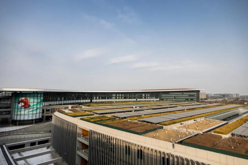 大興機(jī)場(chǎng)充分利用當(dāng)?shù)啬茉捶A賦,通過地源熱泵、光伏發(fā)電、污水源熱泵等多種形式實(shí)現(xiàn)規(guī)劃可再生能源占總能耗比例16%以上。建成全球在機(jī)場(chǎng)領(lǐng)域最大的多能互補(bǔ)耦合式地源熱泵系統(tǒng),供能面積達(dá)到257萬平米。在停車樓、貨運(yùn)區(qū)及飛行區(qū)側(cè)向跑道旁等區(qū)域建設(shè)太陽能光伏系統(tǒng),總裝機(jī)容量約7MW(兆瓦)。