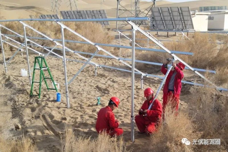 從1月18日人員入場(chǎng)平整場(chǎng)地開始,施工人員每天都自帶午餐加快施工進(jìn)度。3月初太陽(yáng)能設(shè)備到場(chǎng)后,施工人員按照施工工序全面鋪開。截至目前,86個(gè)螺旋樁基礎(chǔ)已全部完成,安裝支架30個(gè),安裝太陽(yáng)能板4個(gè)。