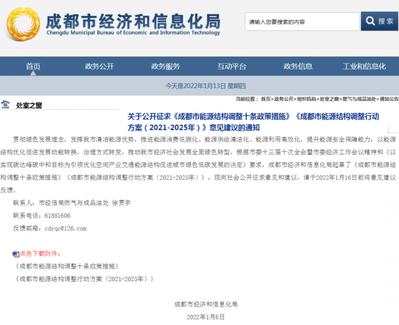 1月10日,成都市經(jīng)濟和信息化局發(fā)布關(guān)于公開征求《成都市能源結(jié)構(gòu)調(diào)整十條政策措施》《成都市能源結(jié)構(gòu)調(diào)整行動方案(2021-2025年)》意見建議的通知。支持先進(jìn)儲能發(fā)展應(yīng)用。積極推進(jìn)電源、電網(wǎng)、用戶側(cè)配套建設(shè)儲能示范建設(shè),按儲能設(shè)施規(guī)模200元/千瓦給予補助。