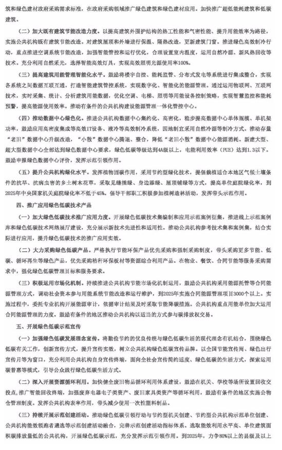 國家機關(guān)事務(wù)管理局、國家發(fā)改委、財政部、生態(tài)環(huán)境部發(fā)布關(guān)于印發(fā)深入開展公共機構(gòu)綠色低碳引領(lǐng)行動、促進(jìn)碳達(dá)峰實施方案的通知。