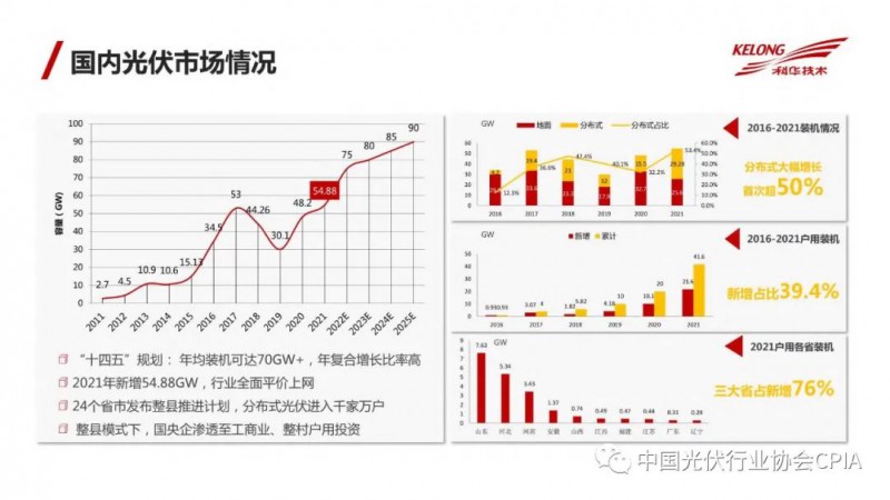 2022年2月23日,由中國光伏行業(yè)協(xié)會(huì)主辦的“光伏行業(yè)2021年發(fā)展回顧與2022年形勢展望線上研討會(huì)”通過網(wǎng)絡(luò)直播形式順利召開。科華數(shù)據(jù)股份有限公司新能源技術(shù)中心總經(jīng)理曾春保作逆變器市場發(fā)展情況與展望,全面介紹了逆變器市場情況與系統(tǒng)挑戰(zhàn)、逆變器產(chǎn)品技術(shù)與系統(tǒng)趨勢。