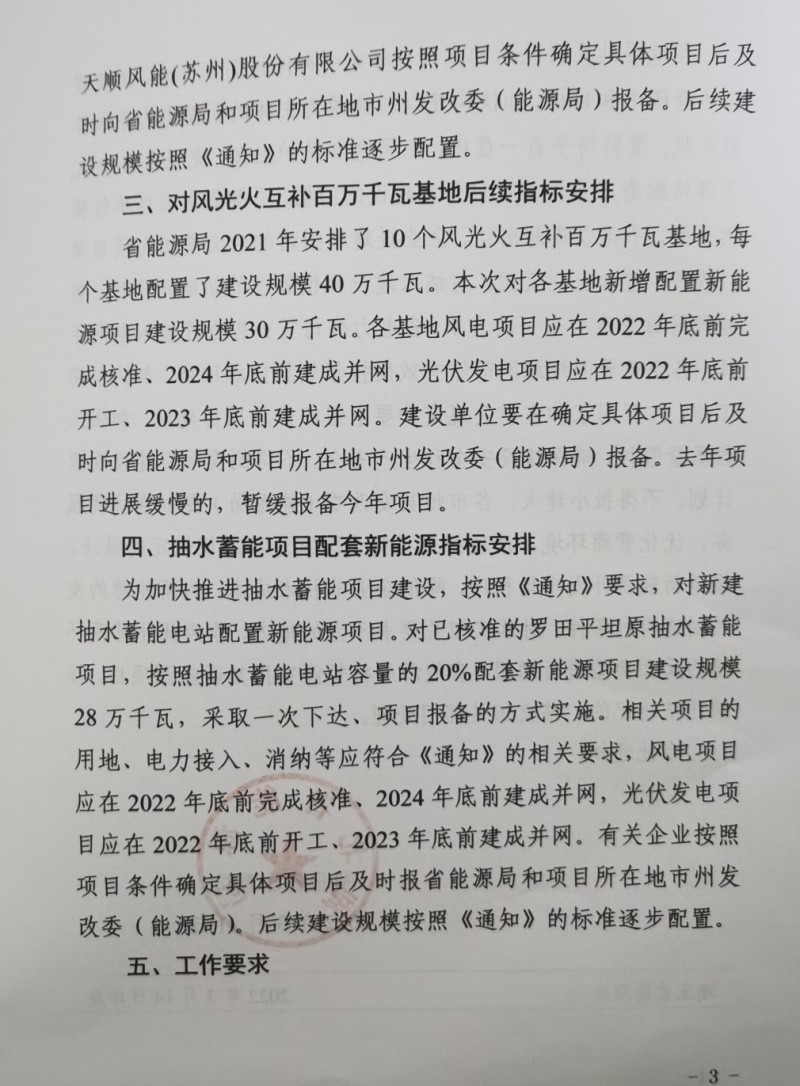 3)對(duì)風(fēng)光火互補(bǔ)百萬千瓦基地后續(xù)指標(biāo)安排,300萬千瓦;