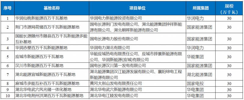 百萬千瓦基地指標(biāo)的具體項(xiàng)目分配如下表所示。