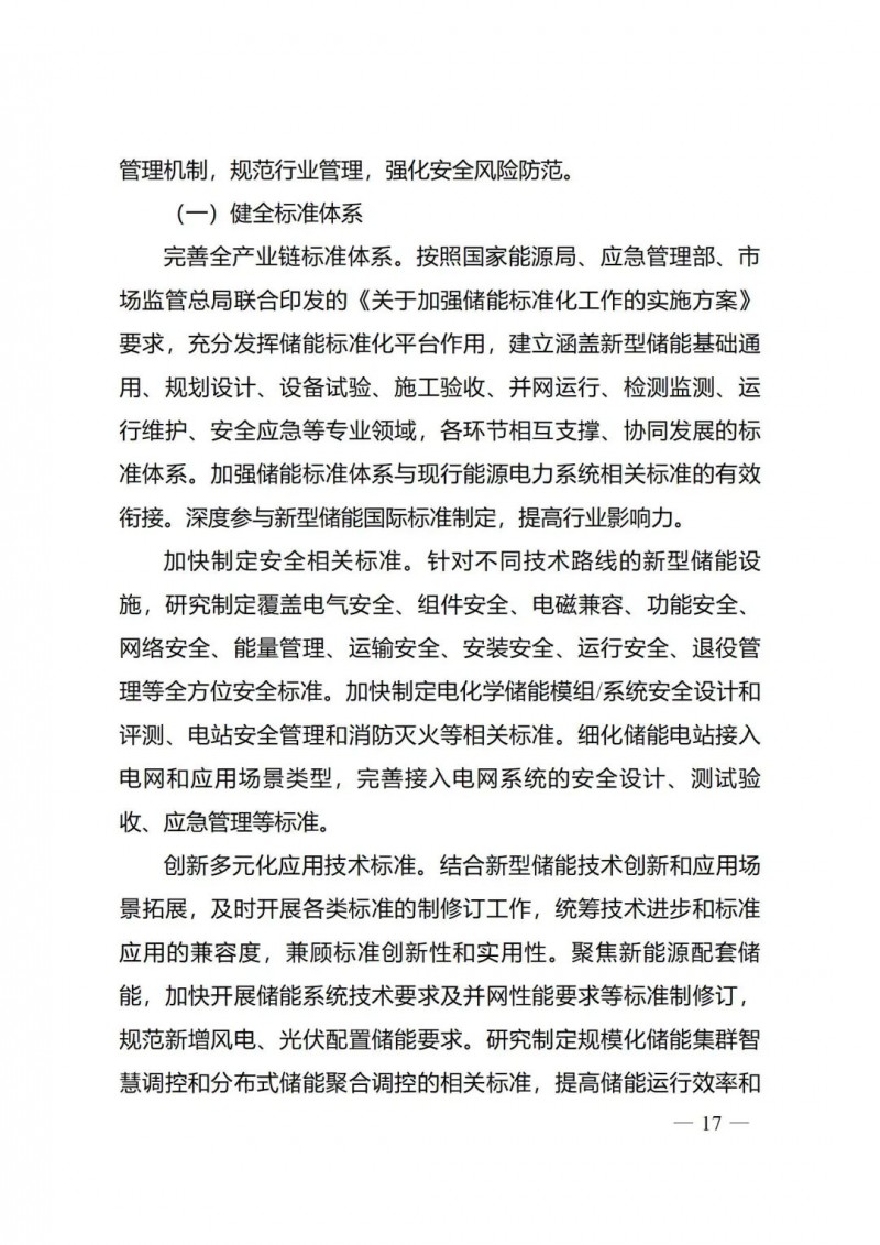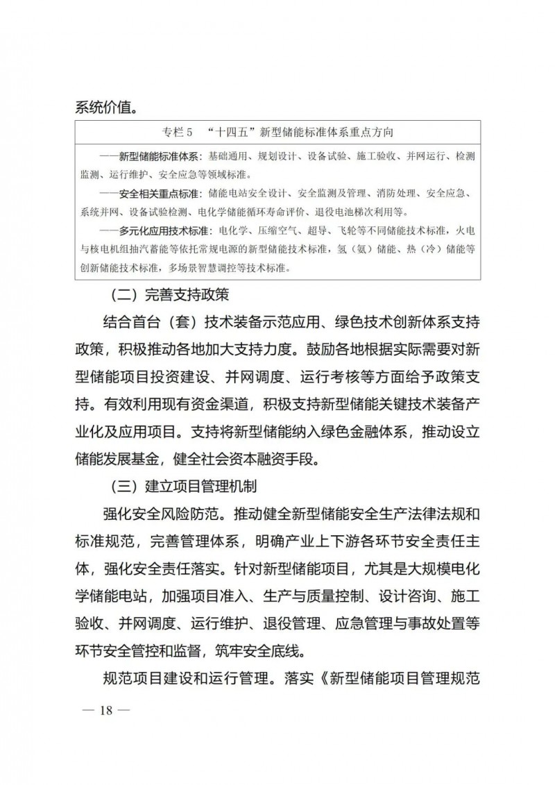 五是著力健全新型儲能管理體系?!秾嵤┓桨浮窂娀瘶藴实囊?guī)范引領和安全保障作用,完善新型儲能全產業(yè)鏈標準體系,加快制定安全相關標準,開展多元化應用技術標準制修訂。要求加快建立新型儲能項目管理機制,規(guī)范行業(yè)管理,強化安全風險防范。鼓勵各地加大新型儲能技術創(chuàng)新和項目建設支持力度,完善相關支持政策。加快建立新型儲能項目管理機制,強化安全風險防范,規(guī)范項目建設和運行管理。