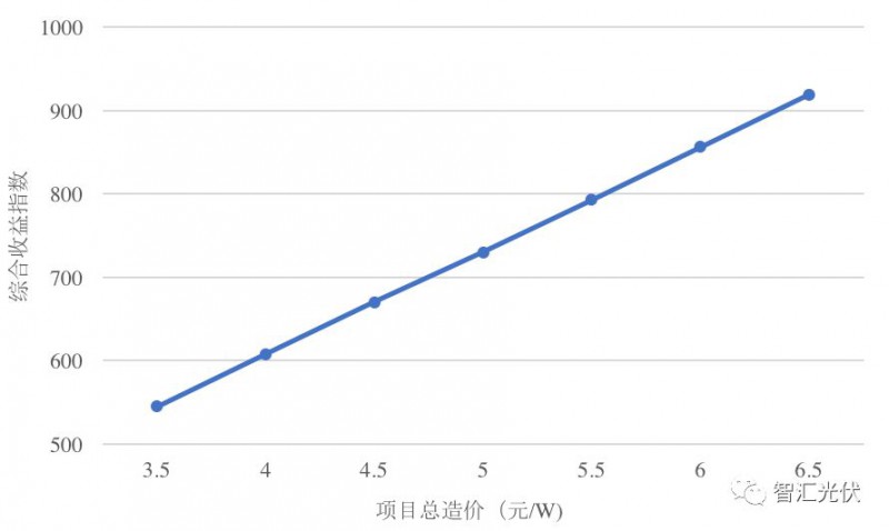 當(dāng)初始投資為6元/W時,綜合收益指數(shù)(發(fā)電小時數(shù)×上網(wǎng)電價)達到860時,項目內(nèi)部收益率即可達到基準收益率8%;