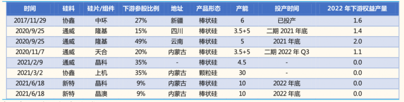 圖5:下游企業(yè)通過(guò)參股方式綁定頭部多晶硅企業(yè)(萬(wàn)噸),資料來(lái)源:各公司公告,國(guó)金證券