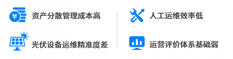 分布式光伏電站建設(shè)完成后的安全運(yùn)維和高效運(yùn)營(yíng)需求接踵而至。然而,面臨比如資產(chǎn)分散管理成本高,人工運(yùn)維效率低,光伏設(shè)備運(yùn)維精準(zhǔn)度差、運(yùn)營(yíng)評(píng)價(jià)體系基礎(chǔ)弱等問(wèn)題,工商業(yè)企業(yè)缺乏數(shù)智化手段提升分布式光伏電站運(yùn)維效率和運(yùn)營(yíng)收益。