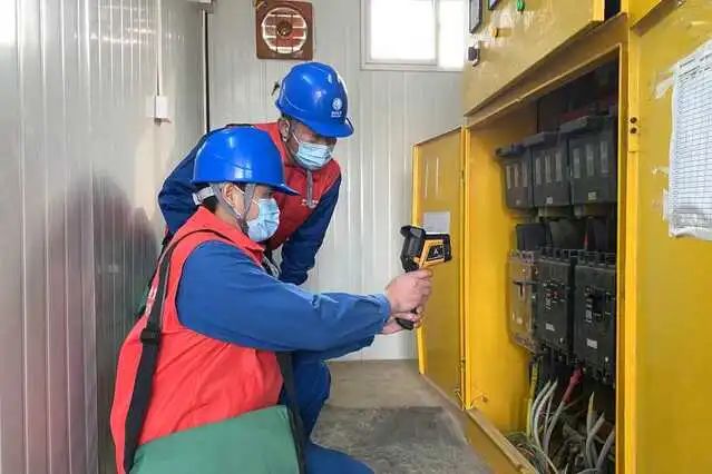 國網(wǎng)石家莊市鹿泉區(qū)供電公司黨員服務隊到千億級產(chǎn)業(yè)園區(qū)海康威視項目建設工地幫助檢查用電設備。張靜攝