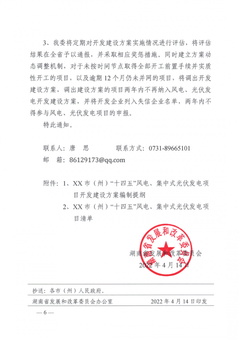 4月14日,湖南發(fā)改委印發(fā)《關于全省“十四五”風電、光伏發(fā)電項目開發(fā)建設有關事項的通知》,力爭做到在“十四五”期間具備開發(fā)建設條件的風電、集中式光伏發(fā)電項目應開盡開。