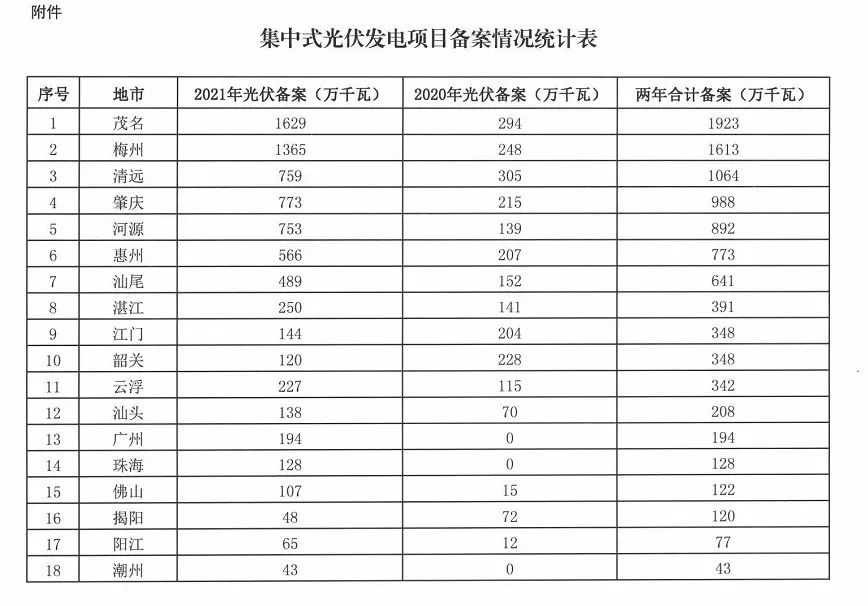 4.鼓勵(lì)競(jìng)爭(zhēng)性配置資源:考慮到茂名、梅州、清遠(yuǎn)等3市備案規(guī)模均已超過(guò)1000萬(wàn)千瓦,肇慶、河源、惠州、汕尾等4市備案規(guī)模均已超過(guò)600萬(wàn)千瓦,遠(yuǎn)超當(dāng)?shù)叵{空間,請(qǐng)上述7市進(jìn)一步加強(qiáng)對(duì)光伏備案工作的指導(dǎo)。
