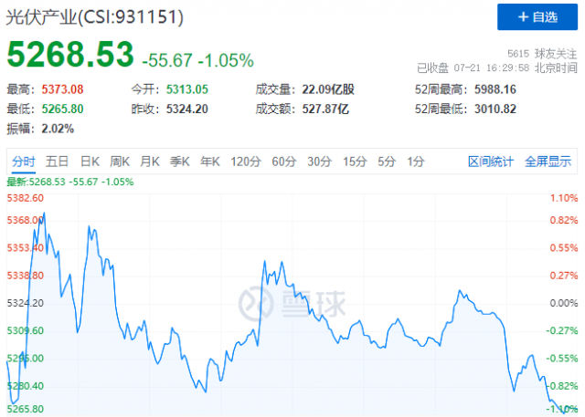 7月21日,光伏板塊延續(xù)分化行情,HJT概念股漲幅居前,而逆變器、硅料、硅片概念股跌幅居前。受此影響,中證光伏產(chǎn)業(yè)指數(shù)(CSI:931151)報收5269點(diǎn),收跌1.05%。
