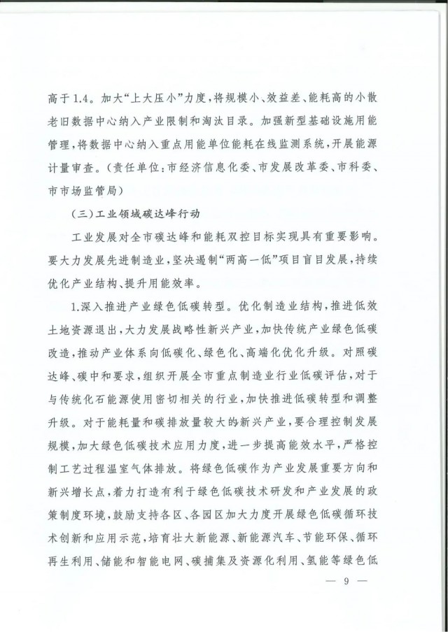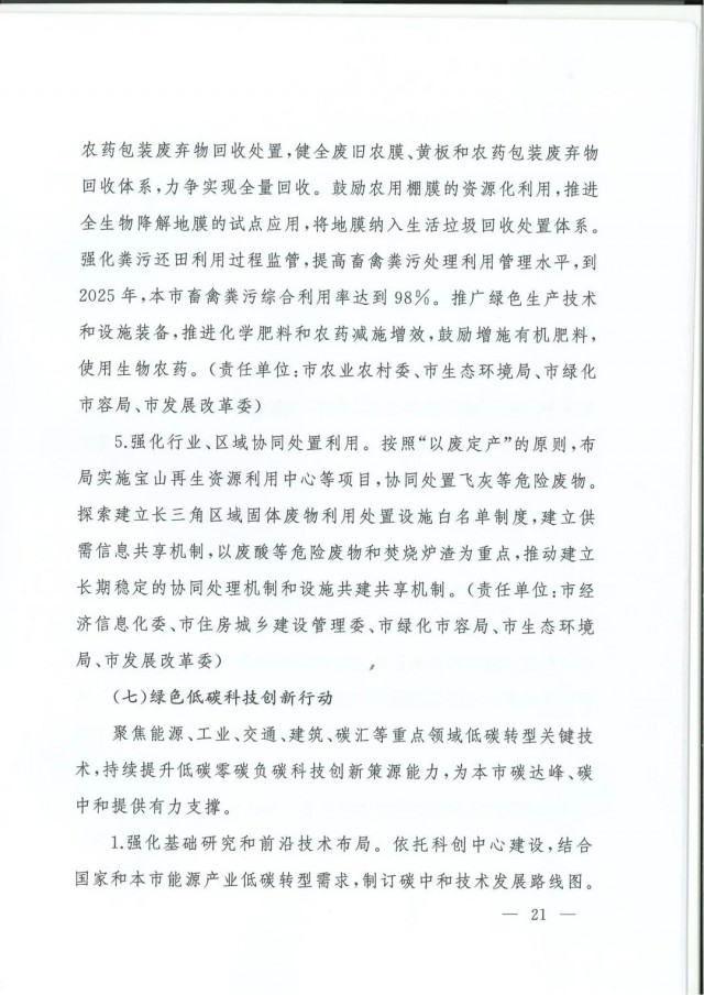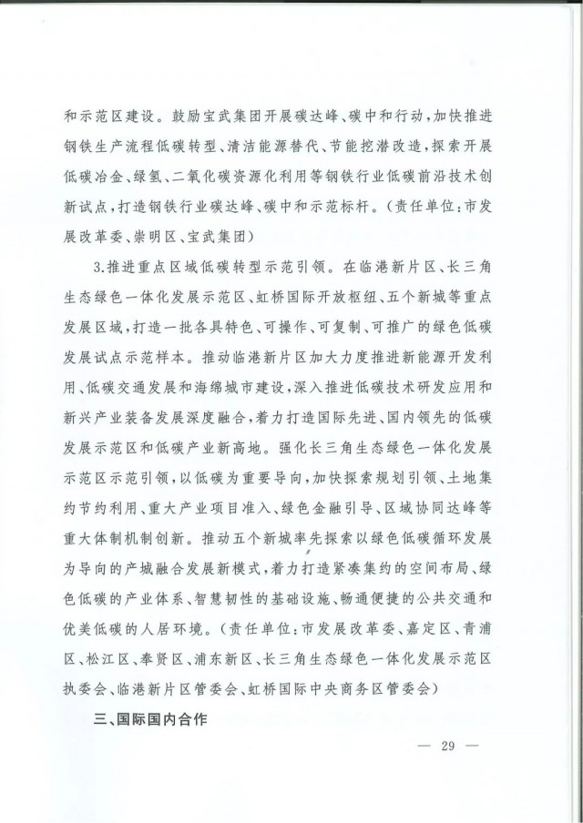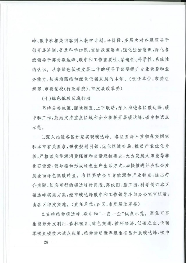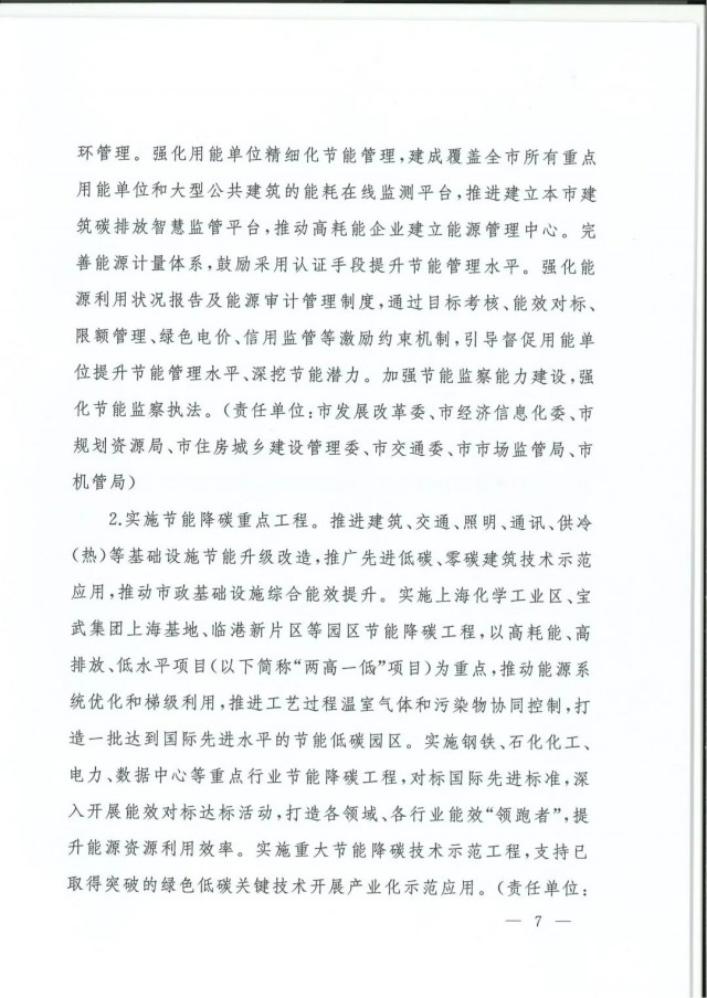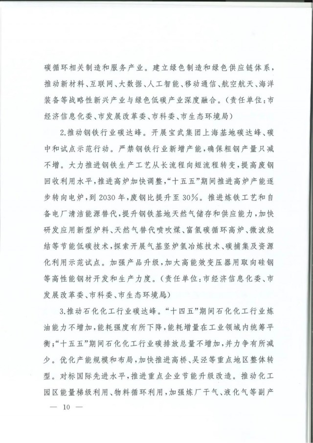 近日,上海市人民政府辦公廳印發(fā)了《上海市碳達(dá)峰實(shí)施方案》?!斗桨浮访鞔_主要目標(biāo):到2025年,單位生產(chǎn)總值二氧化碳排放確保完成國家下達(dá)指標(biāo)。到2030年單位生產(chǎn)總值二氧化碳排放比2005年下降70%,確保2030年前實(shí)現(xiàn)碳達(dá)峰。并計(jì)劃組織實(shí)施“碳達(dá)峰十大行動(dòng)”,包括能源綠色低碳轉(zhuǎn)型行動(dòng)、節(jié)能降碳增效行動(dòng)、工業(yè)/城鄉(xiāng)建設(shè)/交通領(lǐng)域綠色低碳行動(dòng)、循環(huán)經(jīng)濟(jì)助力降碳行動(dòng)、綠色低碳科技創(chuàng)新行動(dòng)、碳匯能力鞏固提升行動(dòng)、綠色低碳全民行動(dòng)、綠色低碳區(qū)域行動(dòng)。