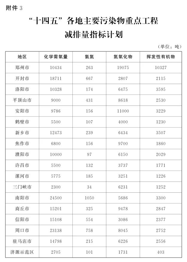 3.“十四五”各地主要污染物重點(diǎn)工程減排量指標(biāo)計(jì)劃