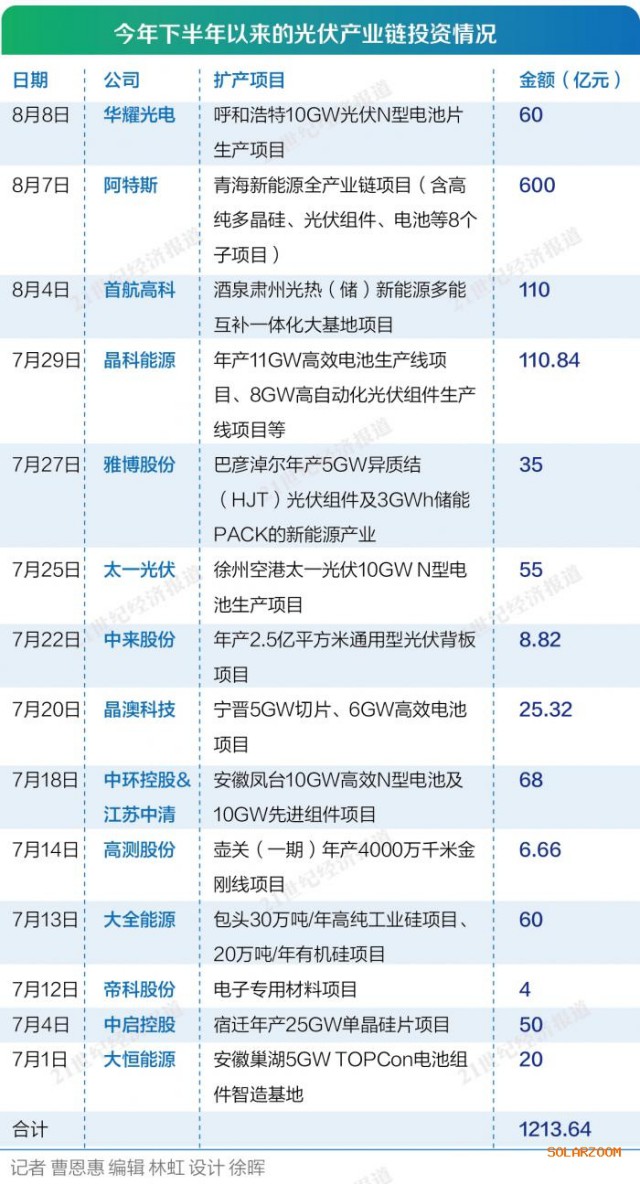 阿特斯的百億擴(kuò)產(chǎn),是今年下半年國內(nèi)光伏產(chǎn)業(yè)鏈再掀擴(kuò)產(chǎn)潮的縮影。