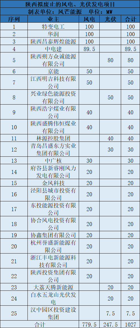 根據(jù)整理,從業(yè)主角度看,目前特變電工、華潤(rùn)、陜西昌泰輝煌能源分別被廢止了100MW風(fēng)電項(xiàng)目。