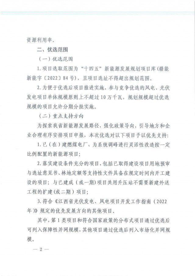 2022年8月25日,能源局印發(fā)關(guān)于開展風(fēng)電、光伏發(fā)電項(xiàng)目競爭優(yōu)選工作的通知,通知包含項(xiàng)目優(yōu)選原則、優(yōu)選范圍、申報(bào)材料要求、工作安排等內(nèi)容。