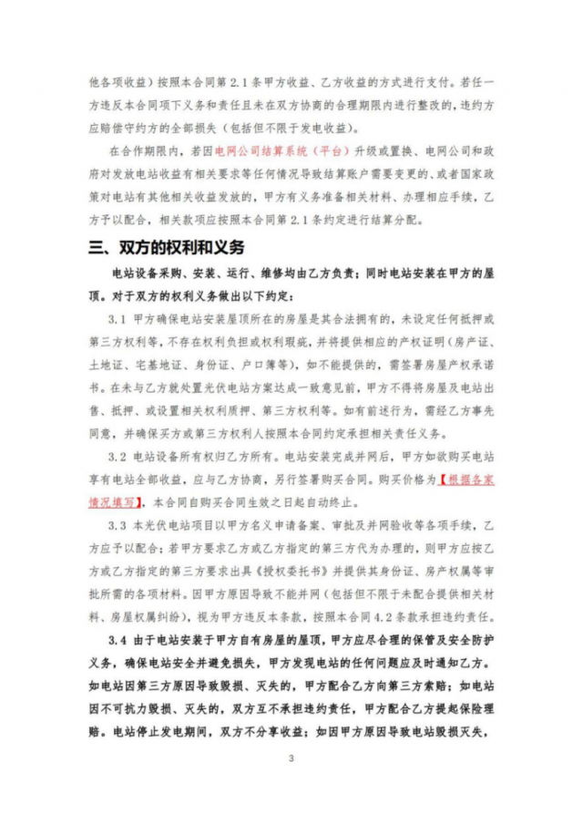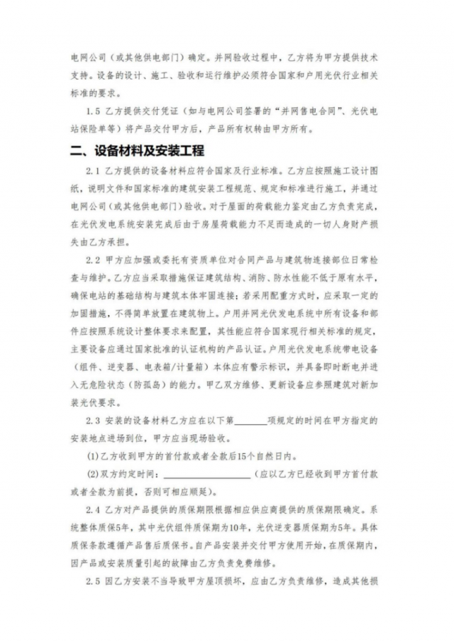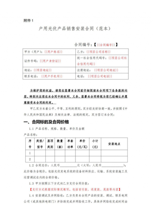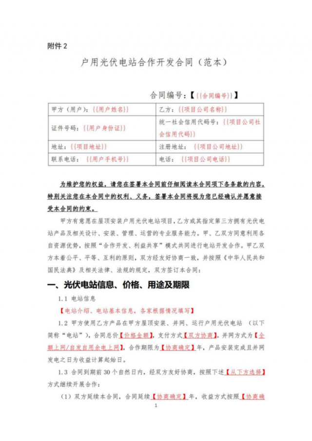 8月30日, 國(guó)家能源局轉(zhuǎn)發(fā)了此前中國(guó)光伏行業(yè)協(xié)會(huì)在充分征求各方面意見(jiàn)基礎(chǔ)上,編制發(fā)布的《戶(hù)用光伏產(chǎn)品銷(xiāo)售安裝合同(范本)》和《戶(hù)用光伏電站合作開(kāi)發(fā)合同(范本)》,供居民用戶(hù)和光伏開(kāi)發(fā)企業(yè)、戶(hù)用光伏經(jīng)銷(xiāo)商等各方參考。