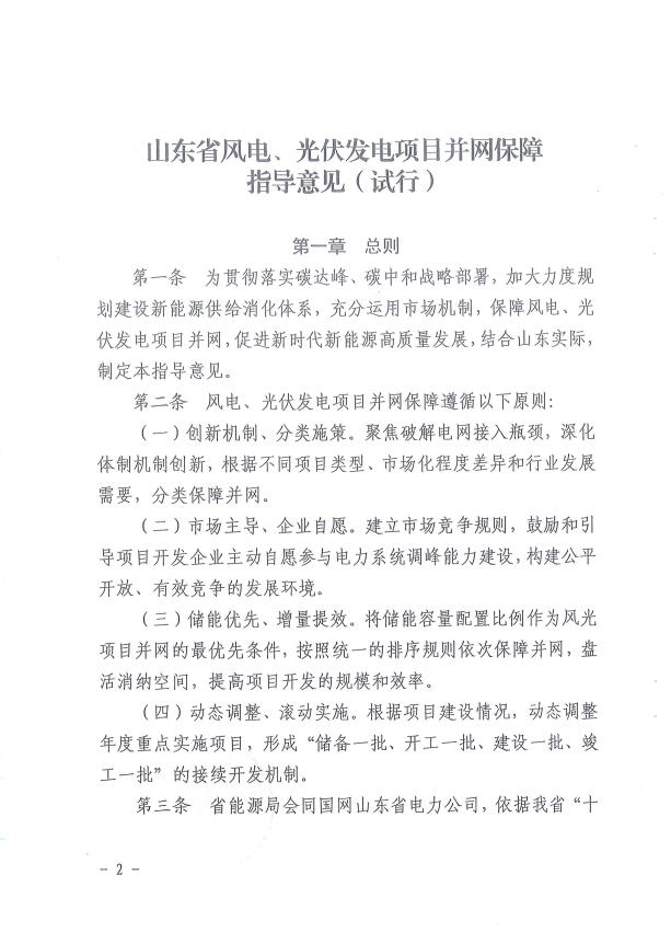 為促進(jìn)新能源大規(guī)模高比例開發(fā)利用,根據(jù)國家《關(guān)于促進(jìn)新時代新能源高質(zhì)量發(fā)展的實施方案》(國辦函〔2022〕39號)《山東省可再生能源發(fā)展“十四五”規(guī)劃》(魯發(fā)改能源〔2021〕1152號)等有關(guān)文件精神,省能源局研究制定了《山東省風(fēng)電、光伏發(fā)電項目并網(wǎng)保障指導(dǎo)意見(試行)》,現(xiàn)印發(fā)給你們,請遵照執(zhí)行。