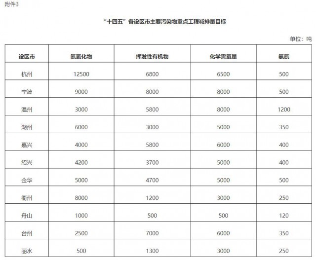 3.“十四五”各設(shè)區(qū)市主要污染物重點工程減排量目標(biāo)