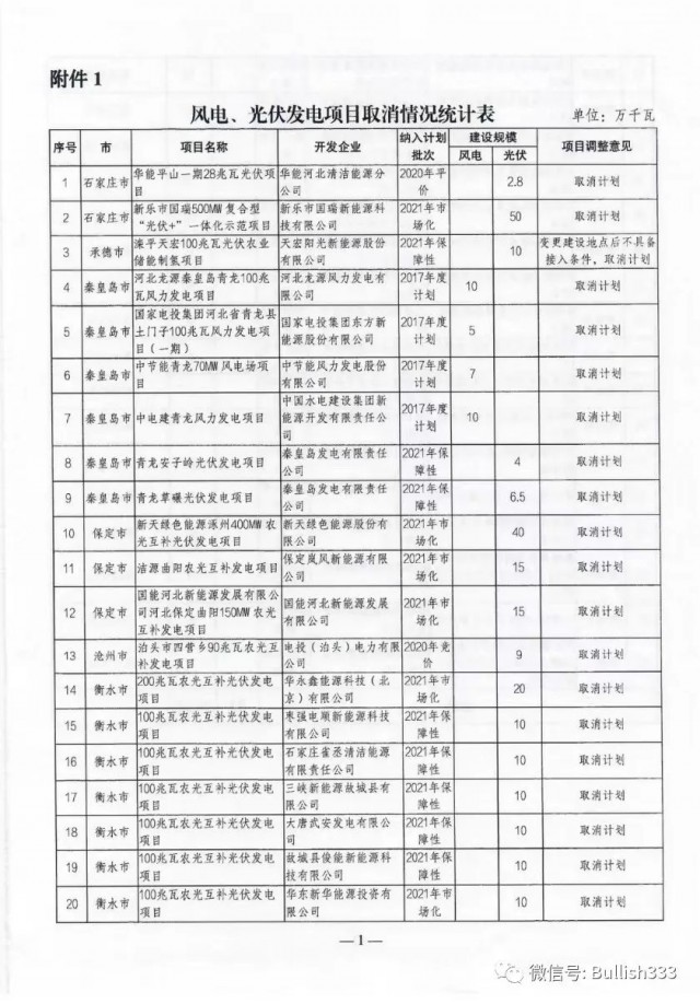 9月16日,河北發(fā)改委正式印發(fā)《關(guān)于公布風電、光伏發(fā)電項目調(diào)整意見的通知》,對受用地政策調(diào)整、疫情等因素影響無法繼續(xù)實施或按期并網(wǎng)的項目進行了調(diào)整。