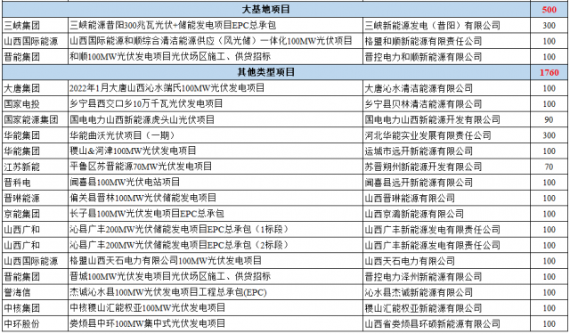2021年,山西省共下發(fā)了11.41GW光伏項目名單,包括: