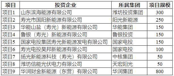 魯北鹽堿灘涂地千萬(wàn)千瓦風(fēng)光儲(chǔ)一體化基地共分為9個(gè)項(xiàng)目,由華潤(rùn)集團(tuán)、濰坊投資集團(tuán)、陽(yáng)光電源、國(guó)家電投、華能集團(tuán)等企業(yè)聯(lián)合開(kāi)發(fā)