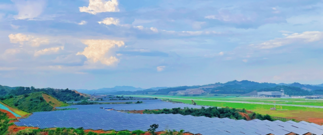 梧州西江機(jī)場光伏發(fā)電項目位于廣西梧州西江機(jī)場跑道旁,占地面積1000余畝,裝機(jī)總量為50兆瓦,為目前國內(nèi)最大的機(jī)場集中式光伏電站。西江機(jī)場光伏項目于今年2月開工建設(shè),7月31日完成全容量并網(wǎng)發(fā)電。項目建成后,年均發(fā)電量可達(dá)5558萬千瓦時,每年可節(jié)約標(biāo)煤約1.7萬噸,減排二氧化碳約4.8萬噸。項目方還會向當(dāng)?shù)厝罕娭Ц锻恋亓鬓D(zhuǎn)租金,后期的運營和發(fā)展,也將帶動地方群眾致富,預(yù)計每年可為地方增加稅收100余萬元。