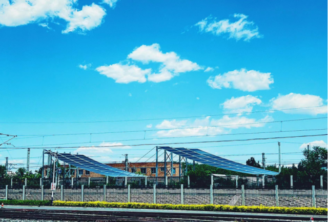 鐵科院咨詢公司開展的“國家鐵道試驗中心鐵路沿線分布式光伏發(fā)電及能源管理試驗”先行示范段項目,是我國鐵路系統(tǒng)首個柔性支架光伏示范項目,日均可為國家鐵道試驗中心提供1000度清潔電力。