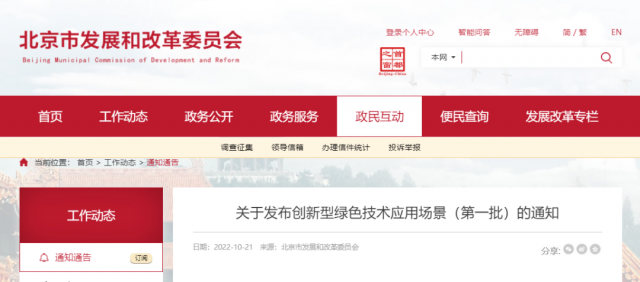 為推進本市構建市場導向的綠色技術創(chuàng)新體系工作,根據(jù)《北京市關于進一步完善市場導向的綠色技術創(chuàng)新體系若干措施》(京發(fā)改〔2021〕1411號,以下簡稱《若干措施》)、《北京市創(chuàng)新型綠色技術及示范應用項目征集遴選管理細則》(京發(fā)改規(guī)〔2021〕9號),我們組織開展了創(chuàng)新型綠色技術應用場景征集工作。經(jīng)公開征集、資料審核和現(xiàn)場調(diào)研,現(xiàn)發(fā)布第一批創(chuàng)新型綠色技術應用場景。若有意愿在上述應用場景開展技術應用的單位,可與應用場景負責人聯(lián)系,自行溝通協(xié)商后續(xù)合作工作。后期,我們將持續(xù)跟蹤應用場景技術應用情況,并按照《若干措施》要求,對符合條件的技術應用效果第三方評價進行支持。