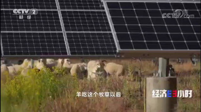 光伏、牧草、牛、牛糞共同有機循環(huán),達到以農養(yǎng)牧,以木促農,種養(yǎng)互促的效果是這個光伏基地正在實施的目光互補項目,也是這里光伏治沙的關鍵之一。風是沙漠的腿,肆虐的狂風會帶著沙丘到處移動,治沙首先要讓沙漠不再流動,而光伏組件具有良好的黨風防風作用,而在光伏組件之間的沙地經過土壤改良,種植下的牧草則可以用來鎖住水分,固定好沙土。