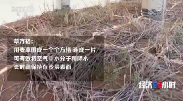 在中衛(wèi)沙漠光伏產業(yè)園,隨處可以見到這種四四方方的格子,這就是當?shù)刂紊车拿孛芪淦?-草方格。用麥草圍成一個個方格連成一片,可以有效將空氣中的水分子和降水長時間保持在沙層表面,為淺根性植物的生長提供水分,在方格中央及周圍撒上草籽,一旦有雨水,它們就能長得很好,而且在植物生長過程中,連成片的光伏板阻擊發(fā)揮了重要的庇護和助力作用。光伏板大面積安裝后,白天為地面植物擋住過強的陽光,有效降低地表水蒸發(fā),并且有效降低風速。夜間光伏板會凝聚部分水分,早上太陽一出來,露水滴下來滋潤著光伏園內的土壤,有了光伏板的庇護,植物在沙漠中可以更好的扎根生長。