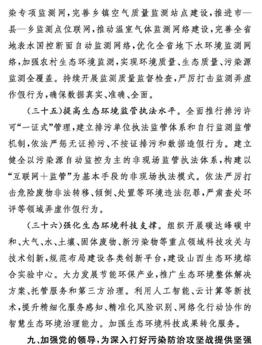 11月8日,山西政府網(wǎng)發(fā)布《關于深入打好污染防治攻堅戰(zhàn)的實施意見》。