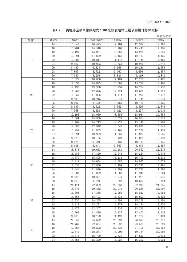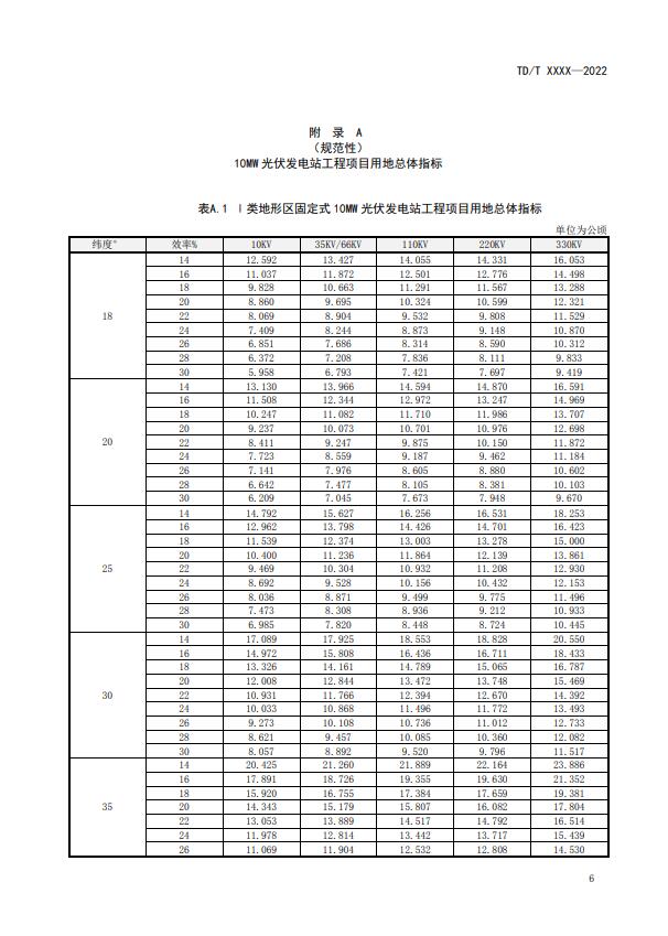 12月5日,自然資源部發(fā)布“《光伏發(fā)電站工程項目用地控制指標(biāo)》等3項行業(yè)標(biāo)準(zhǔn)報批稿公示”,文件指出:光伏發(fā)電站工程項目用地總體指標(biāo)按Ⅰ類地形區(qū)、Ⅱ類地形區(qū)、Ⅲ類地形區(qū)分別計算。光伏發(fā)電站工程項目處于兩個或兩個以上地形區(qū)時,應(yīng)根據(jù)不同地形區(qū)分別計算用地規(guī)模,再累計得出總用地面積。項目用地總面積應(yīng)符合各地形區(qū)用地總體指標(biāo)之和的規(guī)定。