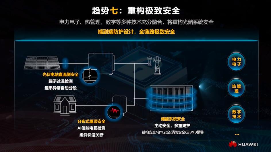 華為此次重磅發(fā)布涵蓋智能光儲發(fā)電機、組串式儲能、電芯級精細管理、安全可信、全面數字化、AI增效等在內的十大趨勢,展望和引領光伏行業(yè)的未來發(fā)展趨勢,通過技術創(chuàng)新實現(xiàn)電網增強、安全可靠、高效運維等,推動光伏成為未來的主力能源。