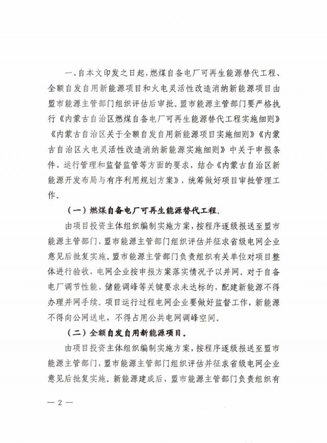 由項目投資主體組織編制實施方案,按程序逐級報送至盟市能源主管部門,盟市能源主管部門組織評估并征求省級電網(wǎng)企業(yè)意見后批復實施。盟市能源主管部門負責組織有關單位對項目整體進行驗收,電網(wǎng)企業(yè)按申報方案落實情況予以并網(wǎng)。對于自備電廠調節(jié)性能、儲能調峰等關鍵要求未達標的,配建新能源不得辦理并網(wǎng)手續(xù)。項目運行過程電網(wǎng)企業(yè)要做好監(jiān)督工作,新能源不得向公網(wǎng)送電,不得占用公共電網(wǎng)調峰空間。
