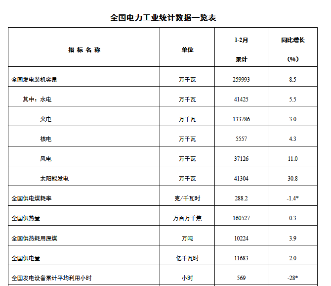 1-2月份,全國(guó)發(fā)電設(shè)備累計(jì)平均利用569小時(shí),比上年同期減少28小時(shí)。其中,火電720小時(shí),比上年同期減少39小時(shí);核電1209小時(shí),比上年同期增加14小時(shí);風(fēng)電401小時(shí),比上年同期增加78小時(shí)。