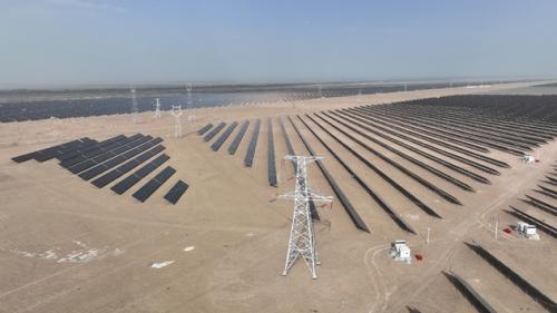 粵水電巴楚光伏項目位于巴楚縣三岔口,該項目總建設(shè)用地面積約9.3萬畝,總建設(shè)規(guī)模為307萬千瓦,共分五期建設(shè)。目前已并網(wǎng)裝機容量67萬千瓦,可減少碳排放約100萬噸。