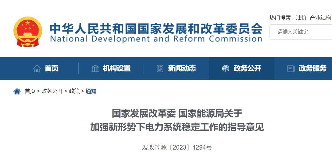 10月25日,國(guó)家發(fā)改委、國(guó)家能源局發(fā)布加強(qiáng)新形勢(shì)下電力系統(tǒng)穩(wěn)定工作的指導(dǎo)意見(jiàn)。