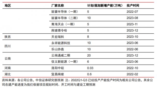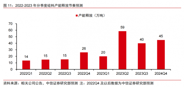 中信證券王喆在10月11日發(fā)布的研報中表示,根據(jù)2022-2023年多晶硅廠家擴(kuò)產(chǎn)計劃,2022Q4季度與2023Q2季度將迎來硅料產(chǎn)能釋放密集期,可能會存在光伏級三氯氫硅出現(xiàn)短暫的供給缺口,屆時有望提振三氯氫硅價格,預(yù)計三氯氫硅高景氣度有望維持至2023Q2。