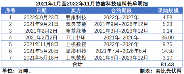協(xié)鑫科技簽署7筆長(zhǎng)單,規(guī)模合計(jì)81.43萬噸。