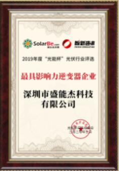 盛能杰榮膺2019年度“光能杯”最具影響力逆變器企業(yè)獎
