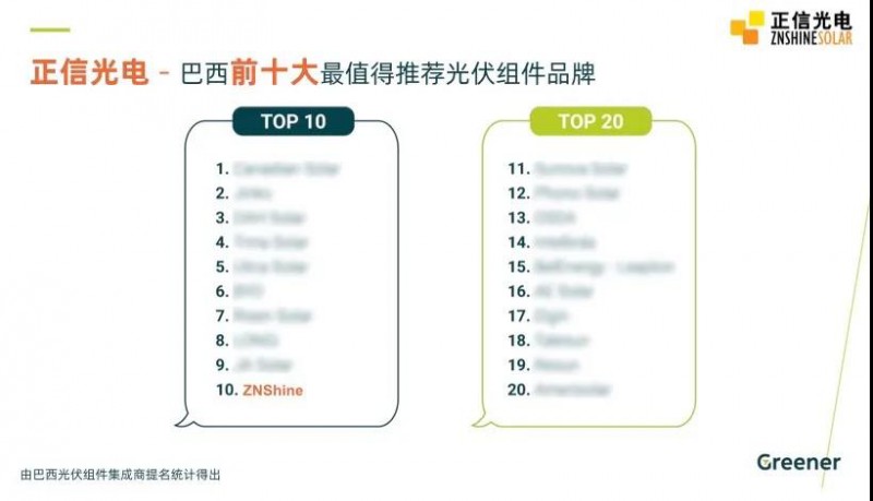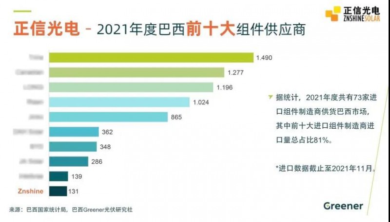 根據(jù)巴西國家統(tǒng)計(jì)局及巴西權(quán)威光伏研究社Greener的最新統(tǒng)計(jì),正信光電以堅(jiān)挺的組件出口業(yè)績,再次名列2021年度巴西前十大組件供應(yīng)商。