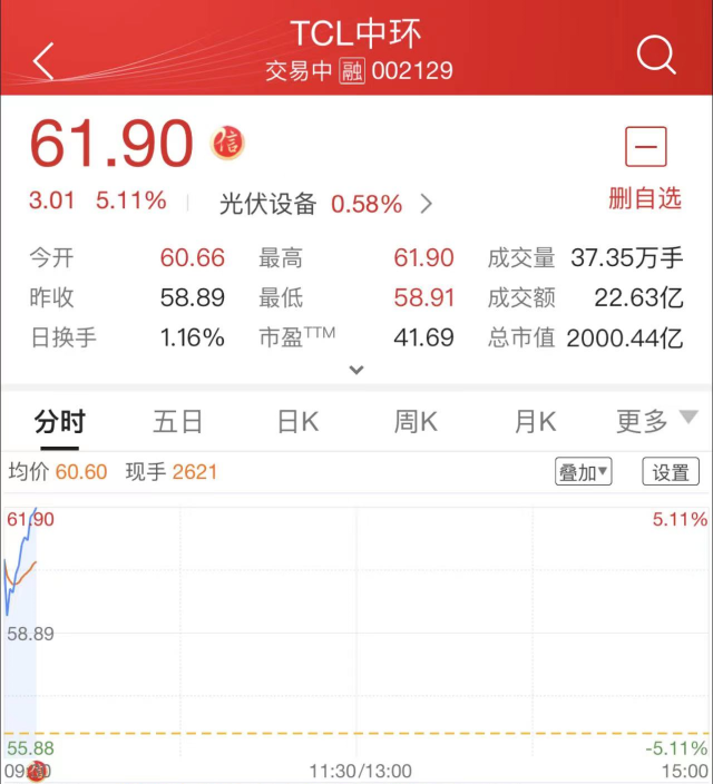 7月1日,TCL中環(huán)(SZ:002129)股價(jià)繼續(xù)延續(xù)強(qiáng)勢(shì)表現(xiàn),總市值首次突破2000億元!截至上午9時(shí)41分,公司股價(jià)大漲5.16%,總市值達(dá)到2010.63億元!自6月27日以來(lái)的五個(gè)交易日內(nèi),TCL中環(huán)股價(jià)最高漲幅高達(dá)33%!